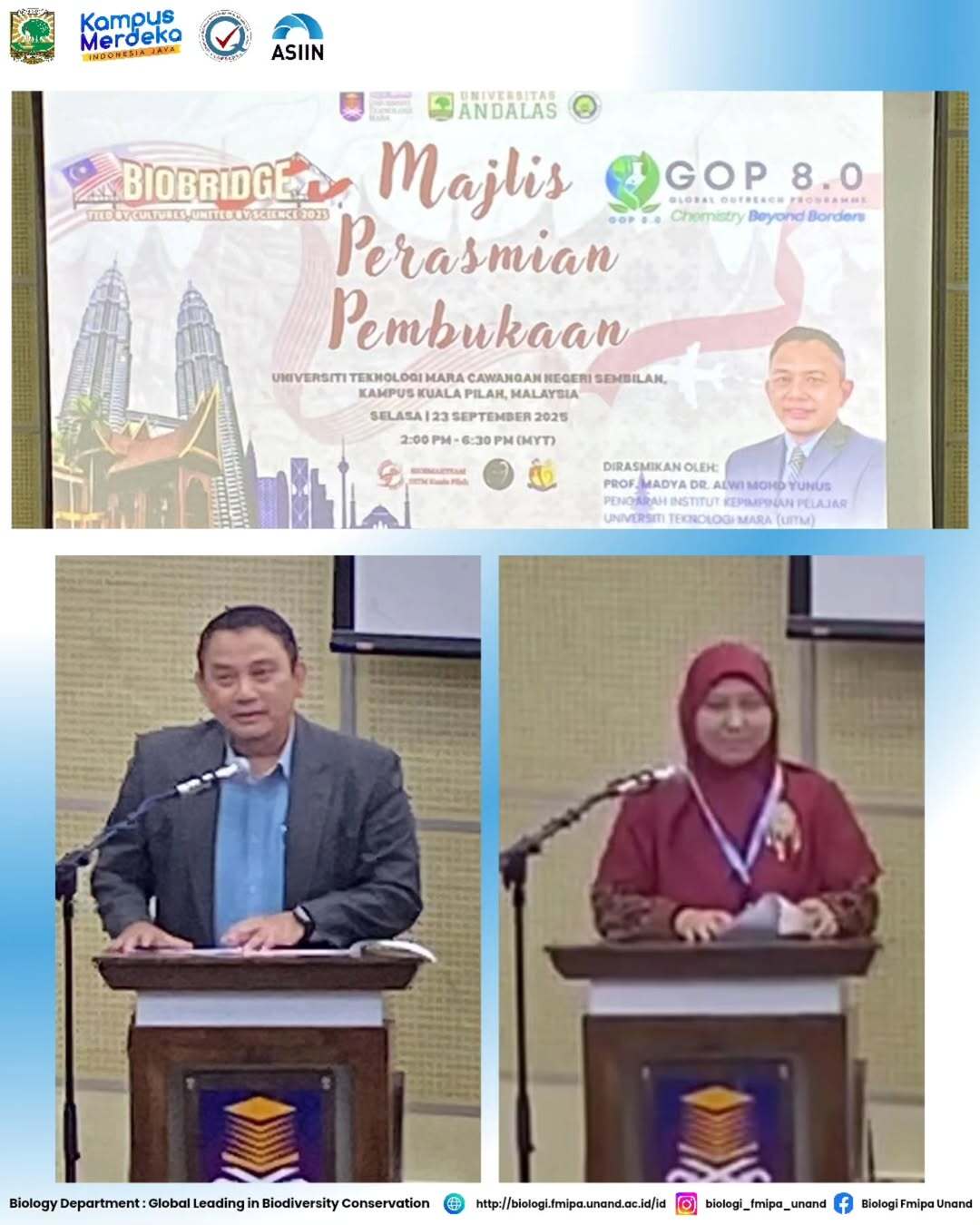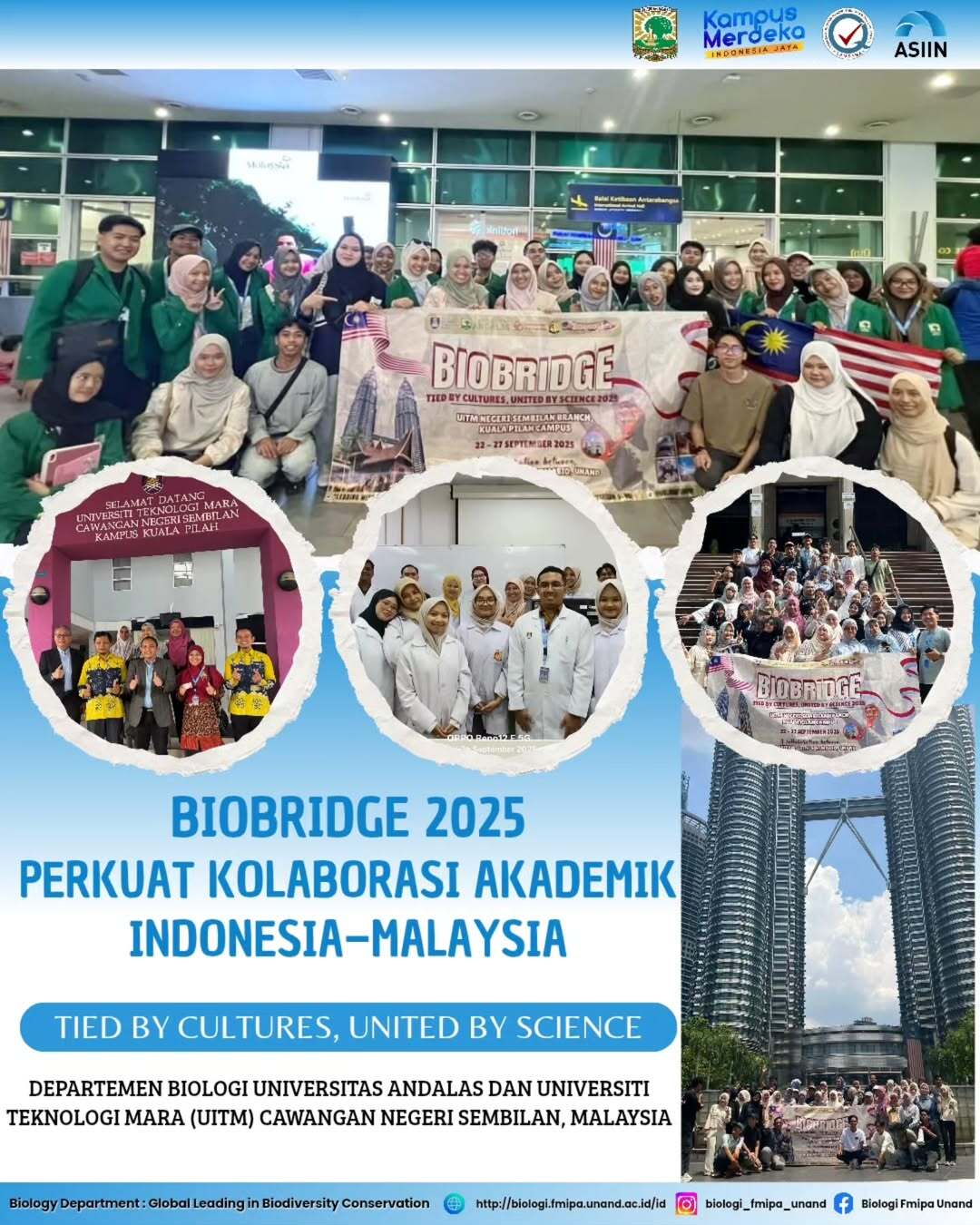 Kuala Pilah, Negeri Sembilan (22–27 September 2025) – Program Biobridge 2025: Tied by Cultures, United by Science sukses dilaksanakan di Universiti Teknologi MARA (UiTM) Cawangan Negeri Sembilan, Kampus Kuala Pilah. Kegiatan ini merupakan hasil kerja sama antara UiTM Cawangan Negeri Sembilan dan Departemen Biologi Universitas Andalas, Padang, yang bertujuan memperkuat jejaring akademik, riset, serta pertukaran budaya dengan peserta sebanyak 24 orang mahasiswa dari Departemen Biologi UNAND dan 24 orang mahasiswa juga dari UiTM Cawangan.